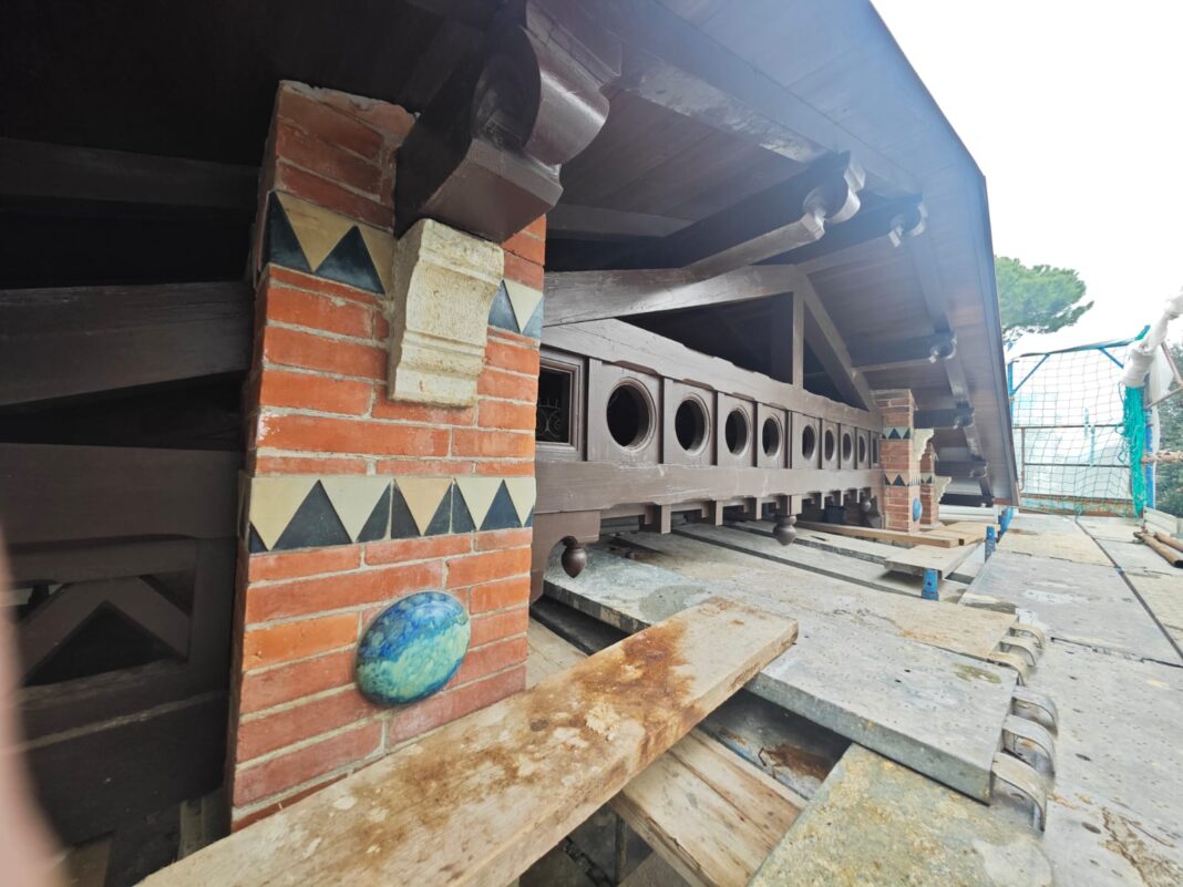 Questo primo lotto di lavori – sotto la supervisione della Soprintendenza – ha riguardato il delicato restauro delle facciate e del tetto. La copertura gravemente danneggiata durante la Seconda guerra mondiale e più volte rimaneggiata, rappresentava la parte più critica e complessa dell’intervento che ha comportato lo smontaggio e il rimontaggio delle carpenterie, a sostegno di ben 18 spioventi, con la sostituzione degli elementi degradati o rotti. Rinnovate le gronde e il sistema di raccolta e deflusso delle acque piovane. Particolarmente attento è il restauro dei prospetti dall’edificio con i molteplici elementi decorativi polimaterici dove, oltre al laterizio e alla pietra, si trovano le ceramiche di Galileo Chini e gli elementi lignei delle gronde, le travature e le transenne ancora fedeli al progetto originale. I lavori sono finanziati dal Comitato per il Centenario dalla Morte di Giacomo Puccini e dalla Fondazione Cassa di Risparmio di Lucca per un importo complessivo di 2.050.000 euro ma la Fondazione Giacomo Puccini sta già programmando un secondo lotto di interventi che riguarderà gli interni dell’edificio, con il recupero degli ambienti e delle decorazioni originarie.